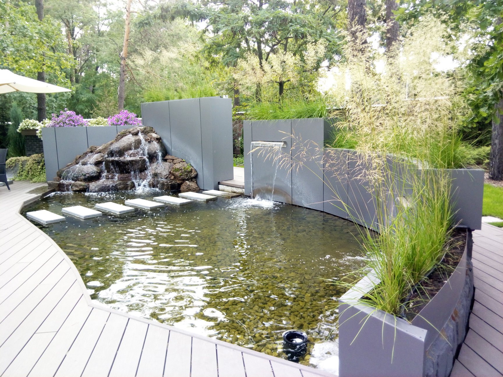 МС Ландшафт занимается устройством водяных участков. Мы предоставляем полный комплекс мероприятий, касающихся этого направления деятельности. Проектирование, выбор необходимых материалов и конструкций, создание бассейнов и водовместилищ, оснащение водой и другими услугами для оформления идеального декора для дачи, загородного коттеджа или любой области прилегающей к водной поверхности. Наше агентство предоставляет сервисы обустройства по приемлемой стоимости, на которую влияет география локации, стройматериалы, тип строительных мероприятий и их количество.